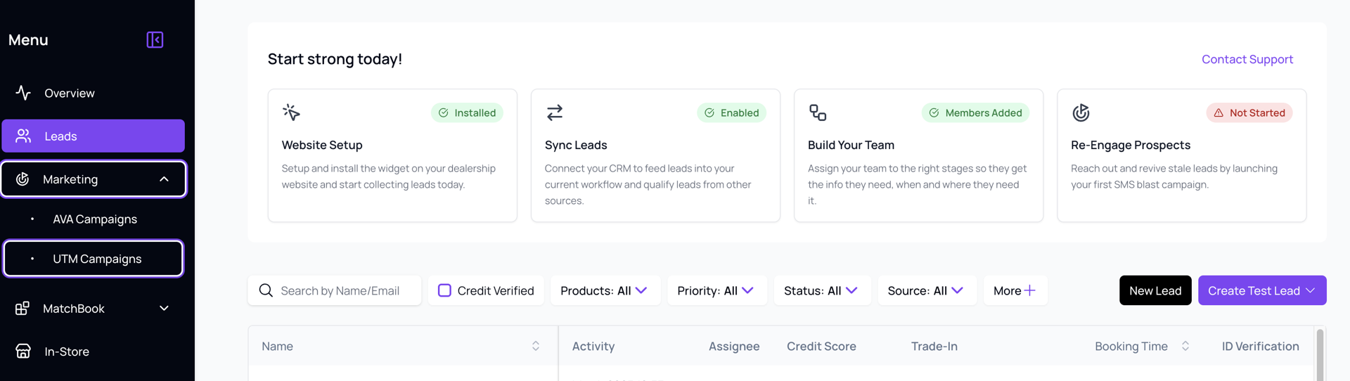 When a customer arrives through a UTM-tagged link, the campaign information is automatically captured and displayed in the new UTM Campaigns dashboard. Dealers can immediately see how each campaign is performing across the entire buyer journey.